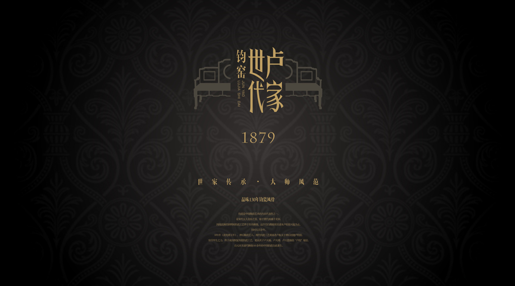 市面上鈞瓷品牌多數(shù)是印章的形式,只能反映是個傳統(tǒng)的產(chǎn)品無法再過多文化解讀而盧家鈞瓷,具有復燒鈞瓷的行業(yè)地位,又有一脈相承的特征,是其它品牌無法比擬的文化高地我們將這種傳承深化挖掘在品牌中滲透進“晚清、民國、世家大宅、名門望族”氣質(zhì)特征彰顯尊貴地位的同時能使整個品牌有一種文化帶入感。